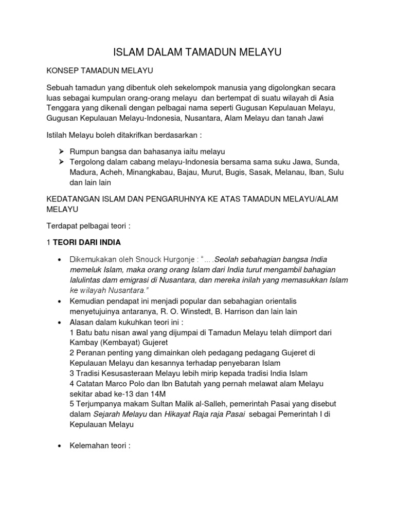 Bab3 Tamadun Melayu from imgv2-2-f.scribdassets.com Islam sebagai tanah jawi dan seluruh penduduk alam melayu dinamakan sebagai bangsa jawi sempena nama bahasa dan tulisannya yang digunakan sebagai jawi. Tamadun melayu • dibentuk oleh sekumpulan manusia • digolongkan sebagai kumpulan orang melayu • tertumpu kepada suatu wilayah di asia tenggara • dikenali dengan nama: Alam melayu dikenali dengan nama. Nota lengkap sejarah t4 dan t5. Kini wilayah ini di malaysia lebih terkenal dengan nama alam melayu, misalnya di ukm ada institut alam dan tamadun melayu (atma), dan di indonesia dikenali sebagai kepulauan nusantara. Peranan masyarakat menjaga nama baik negara. Satu teori mencadangkan bahawa ia berasal daripada perkataan bahasa jawa melayu atau mlayu (bermakna 'lari' atau 'berjalan lancar'), untuk menggambarkan arus sungai yang kuat di sumatra yang dikenali dengan nama sungai melayu. Negeri ini juga bersempadan dengan negeri perak di utara, pahang di timur, negeri sembilan di selatan dan selat melaka di sebelah barat.